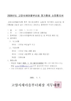 2026년 고양시새마을부녀회 정기총회 개최공문,소집통지서,위임장
